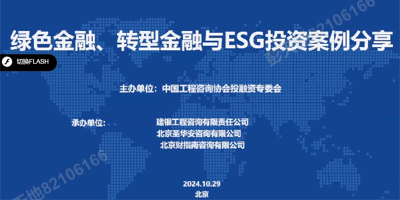 2024-10-2912926 次2024年10月29日下午2:30,由中国工程咨询协会投融资专委会主办,由建银工程咨询有限责任公司、北京圣华安咨询有限公司和北京财指南咨询有限公司承办的《绿色金融、转型金融与E…